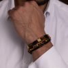 Tyto náramky jsou opatřeny osmihrotým symbolem odkazujícím na kolo dharmy, který značí cestu k naplněnému životu vedeného v souladu s našimi skutečnými hodnotami a přesvědčením. Každý pohled na zápěstí nám tak může připomenout, co nás skutečně naplňuje a dělá šťastnými. Tento šperk není jen ozdobou – je to tichý průvodce napříč celým životem, který nám pomáhá zůstat pevně na své cestě i ve chvílích, kdy máme pochybnosti. Náramek se stane osobním závazkem k naplněnému životu či krásným dárkem pro blízkého člověka, jehož chceme podpořit na jeho vlastní životní cestě. Více se o symbolice dharmy dozvíte zde.